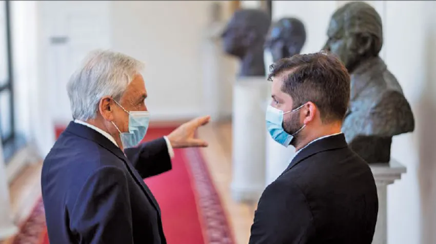 El presidente electo de Chile, Gabriel Boric estuvo acompañado por su jefa de campaña Izkia Siches y su jefe político Giorgio Jackson, en la reunión con el presidente Sebastián Piñera, cuyo objetivo fue coordinar lo que será el traspaso de mando entre ambas administraciones.