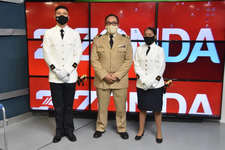 El Prefecto Bruno Romaniuk, y los Cadetes de tercer año: Karen Cruz y Franco Bustos pertenecientes a los Institutos de Formación de la Prefectura Naval Argentina informaron en