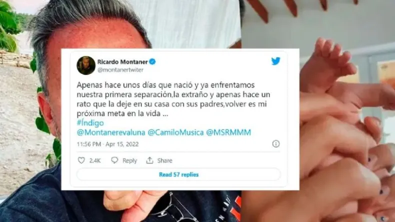 Sin embargo, los compromisos laborales de Ricardo Montaner lo obligan a alejarse de Índigo antes de lo pensado. "Apenas hace unos días que nació y ya enfrentamos nuestra primera separación. La extraño y apenas hace un rato que la dejé en su casa con sus padres. Volver es mi próxima meta en la vida", expresó con tristeza el popular cantante.