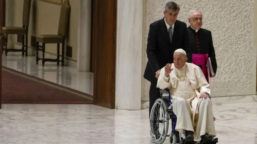 El Papa empezó a usar silla de ruedas para acelerar la recuperación de la rodilla