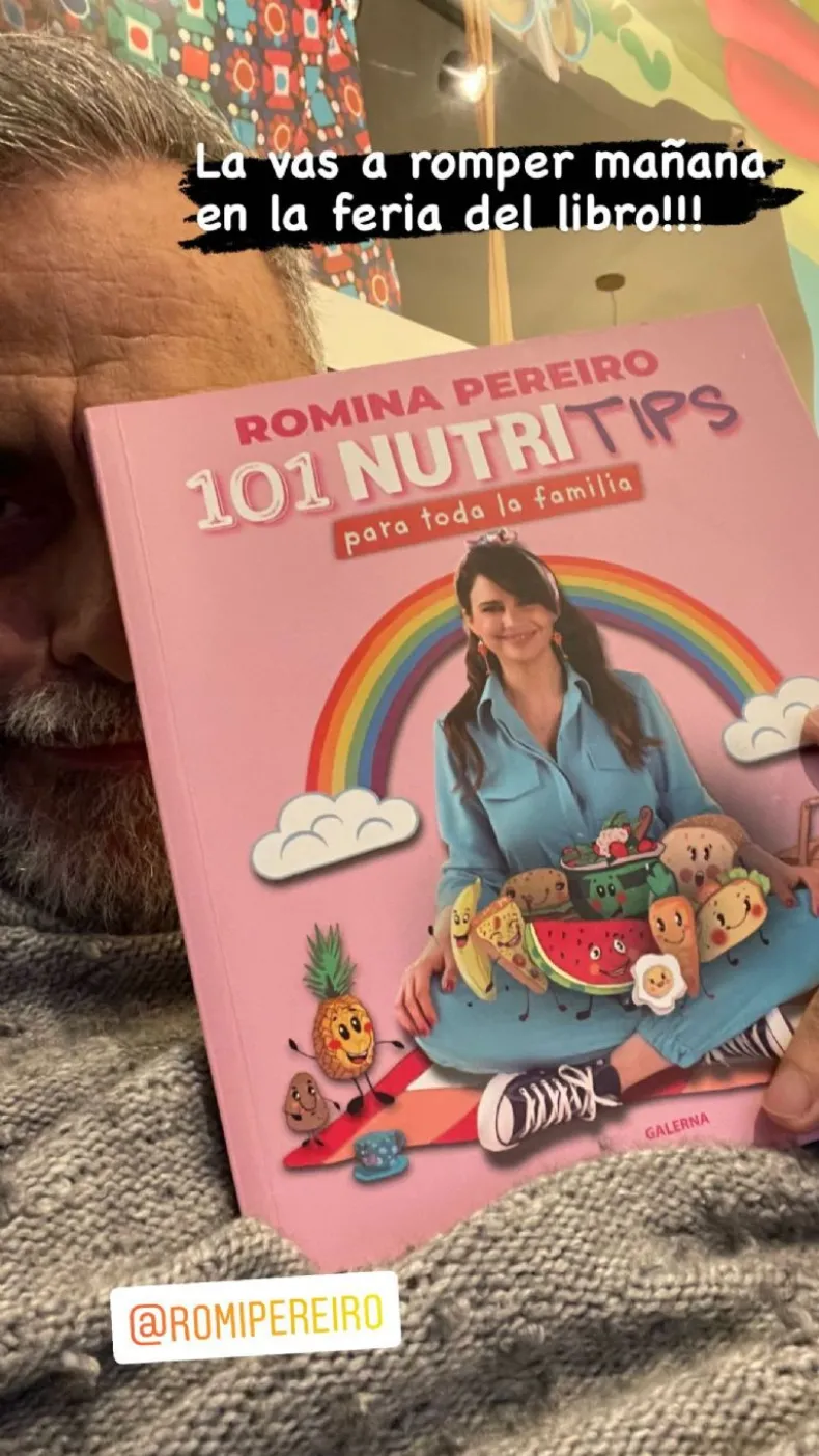 "La vas a romper mañana en la Feria del Libro", escribió Rial en una de sus historias de Instagram. En el posteo, se lo ve al periodista sosteniendo el libro de Pereiro, semi escondido detrás de la tapa del ejemplar.