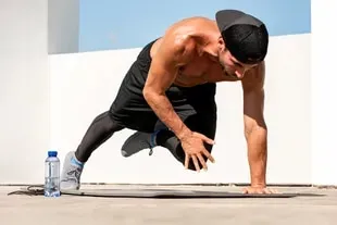 "Hay que ubicarse boca abajo, poner el peso sobre los codos y las puntas de los pies. Elevar la cadera y mantener la postura recta", dice Sebastián Petroni, preparador físico.