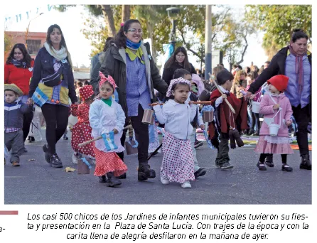 Por otra parte, casi 500 chicos que componen los 9 jardines de Infantes de la Municipalidad de Santa Lucía y otro número similar de alumnos de algunos establecimientos escolares cercanos al municipio que fueron invitados, tuvieron su acto de celebración anticipada del 25 de Mayo.