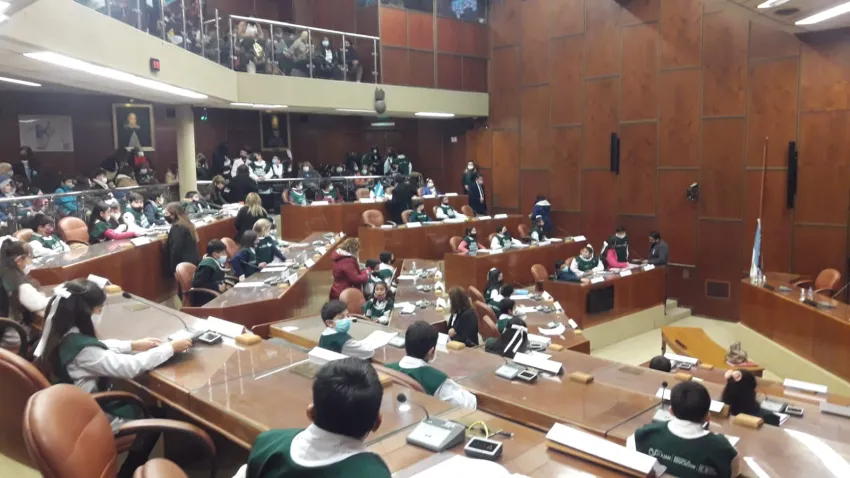 En el recinto de la Cámara de Diputados se está llevando a cabo el Parlamento de Clubes Ambientales Escolares de San Juan. El acto está encabezado por el vicegobernador Roberto Gattoni y el secretario de Medioambiente, Francisco Guevara.