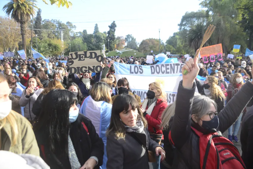 Los docentes autoconvocados marchan por las calles de la ciudad