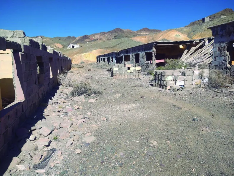 Cuando hace un recorrido por lo que quedó en el lugar cuenta que "la planta de tratamiento del mineral se encuentra casi completa". Quien soportó los problemas del tiempo y en algunos casos del vandalismo fueron las construcciones de la gente que vivía en el lugar. En el poblado, inclusive habría tenido un sistema de cloacas.