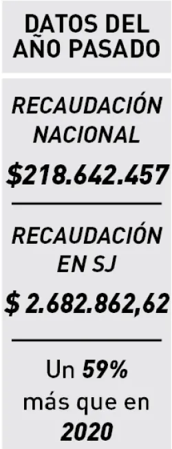 El año pasado, el monto recaudado en SJ fue de $ 2.682.862,62 con un incremento del 59% respecto a la colecta anterior.