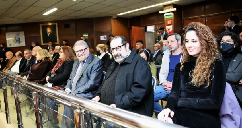 Después, el diputado Juan Carlos Gioja brindó detalles de la biografía de Eduardo Peñafort, Doctor Ciencias Geológicas, Post Doctorado en Paleontología, en reconocimiento a su trayectoria y significativo aporte a la Investigación, desarrollo y difusión del conocimiento científico del Patrimonio Natural y Cultural de la provincia de San Juan.