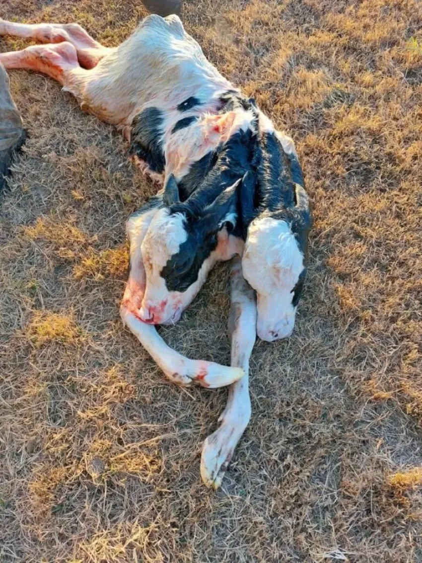 Un ternero con dos cabezas nació en un tambo de localidad de La Palestina, provincia de Córdoba, pero murió a los pocos minutos. Su madre, quien sufrió graves lesiones durante el parto, también falleció dos días después.
