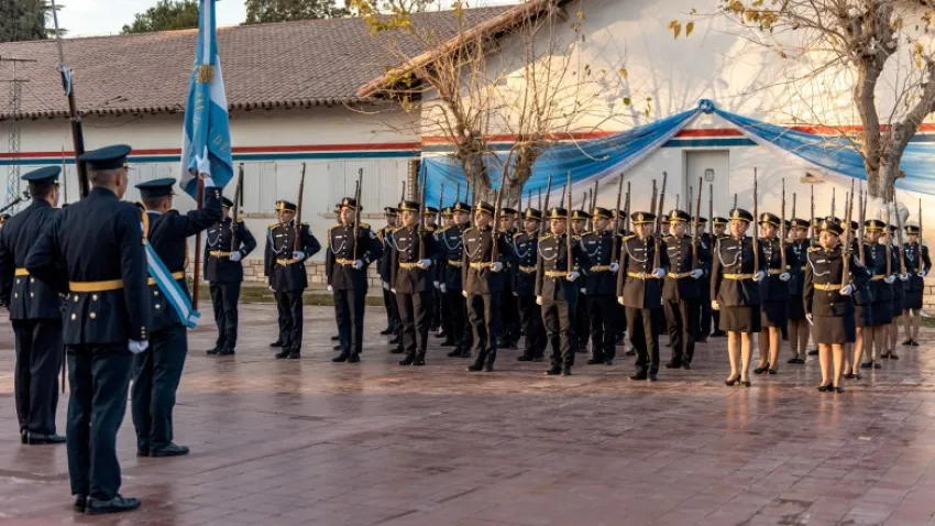 Emotiva jura de lealtad a la Bandera de los cadetes de la Policía de San Juan. Al conmemorarse el día de la enseña patria, alumnos de tercer año de la Tecnicatura en Seguridad Ciudadana, prestaron juramento a la Bandera.