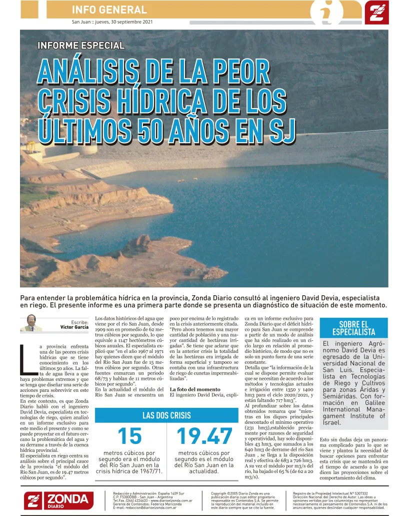 En la categoría Periodismo escrito, el 1º Premio (compartido) fue para el trabajo "Análisis de la peor crisis hídrica en los últimos 50 años en SJ", de Víctor Augusto García.