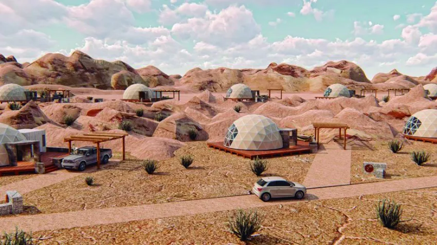 A buen ritmo y dentro de las estimaciones previstas continúa la obra del Eco Domo Glamping" en el Parque Provincial Ischigualasto. Según comentó el administrador del Parque, Emilio Fernández, "la obra va muy bien"