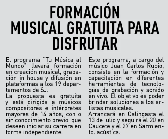 "En esta ocasión trabajamos en conjunto con el Ministerio de Turismo y Cultura y el municipio de Albardón, no sólo para visibilizar a nuestros artistas, sino que también llevamos la música a los departamentos, para sumar músicos de otros territorios y brindarles asesoramiento".