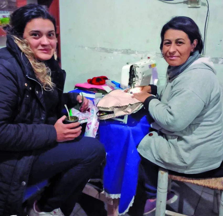 Rocío se crió entre telas, máquinas de coser y costuras, ya que su madre era modista. De ella heredó el oficio. Por eso junto a Susana Barboza, una vecina, se dedican a elaborar prendas para niños y bolsos en el Barrio Campo de Batalla de Angaco.