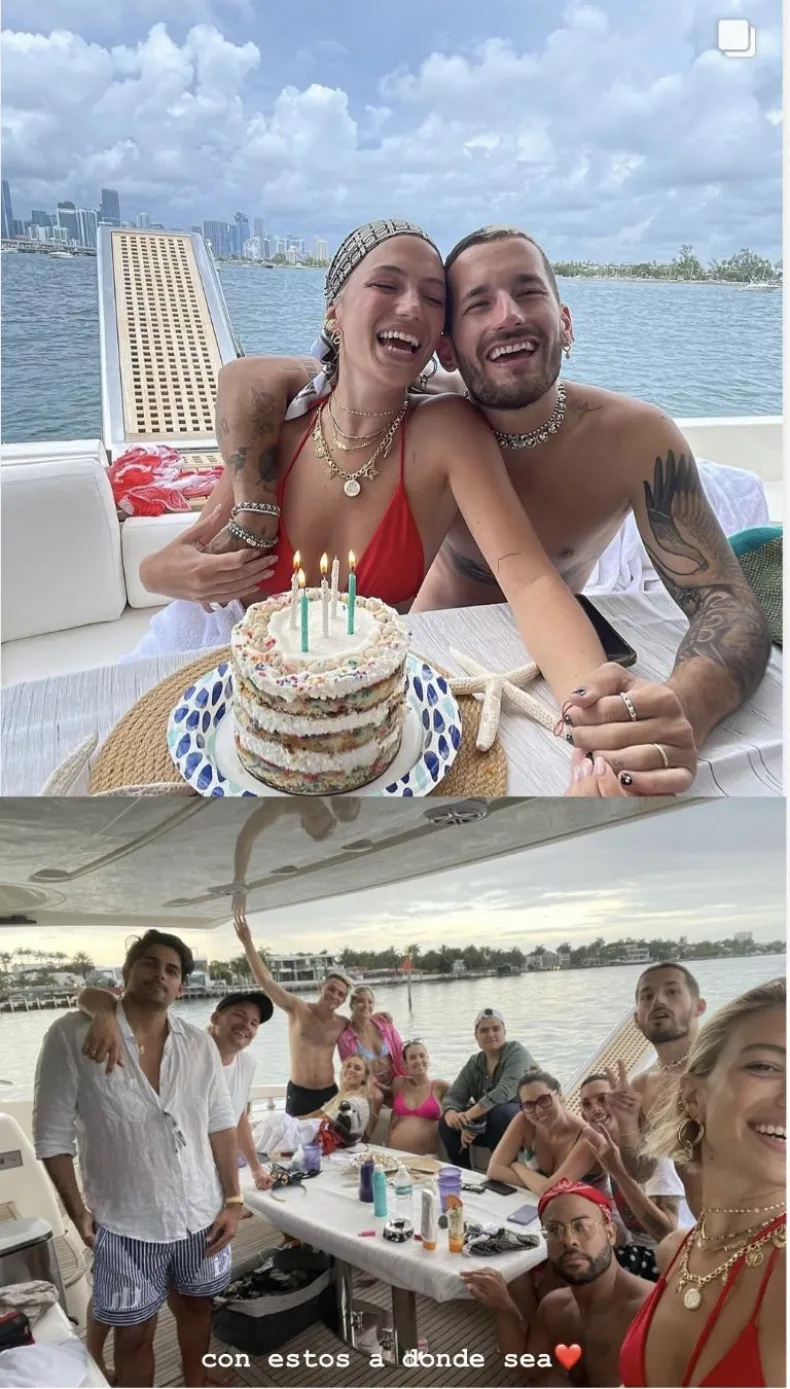 Pero antes de ir a su casa, la modelo sopló las velitas en el yate y recibió el "casi" feliz cumpleaños por parte de todos sus invitados, quienes disfrutaron de un verdadero banquete. Además, todos siguieron la fiesta en el hogar de la pareja, que estaba decorado con globos y girnaldas para la ocasión.