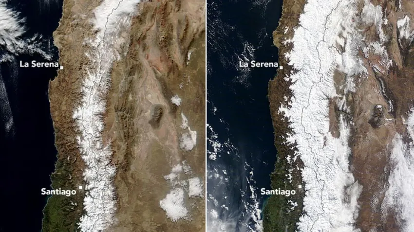 La NASA publicó en sus redes sociales un informe donde muestra dos imágenes de la Cordillera de los Andes, entre el 7 de julio y el 21, comparación que demuestra la acumulación de nieve. Esto genera buenas expectativas en la provincia, ya que San Juan atraviesa la peor sequía de la historia. Es más, calculan que este año hidrológico la cota del Río San Juan sea de 400 hectómetros cúbicos de agua, la marca más baja de la historia.