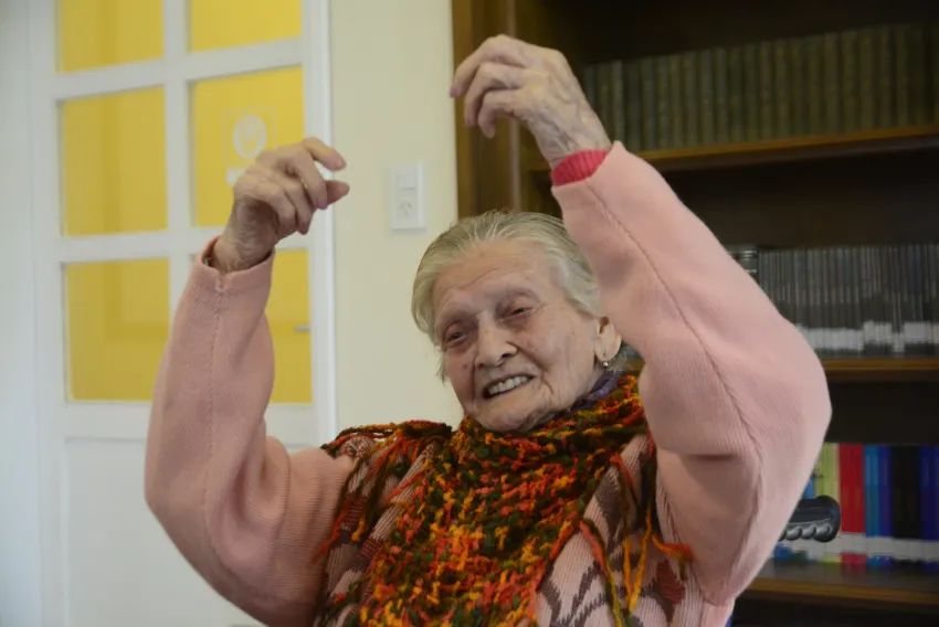 Se trata de la residente más longeva que hoy vive en la Residencia de Adultos Mayores. Allí recibe atención médica y pasa sus días entre mates, caminatas y bingo.