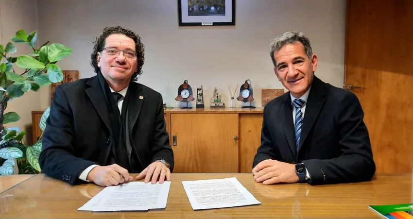 El presidente del Consejo, Cr. Fabián Rodríguez y el decano de la Facultad de Derecho y Ciencias Sociales de la Universidad Católica de Cuyo, Mg. José Luis López Cerviño firmaron un convenio en el marco de las diferentes carreras de posgrado que ofrece la UCC con la intención de abrir el espacio para los profesionales en ciencias económicas.