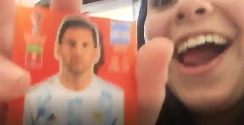 Juntos a sus compañeros, se filmó abriendo un paquete, salieron varias figuritas y en un momento, se escuchó un grito, hubo aplausos y mucha emoción. La chica mostró y le había tocado la figurita de Leonel Messi.