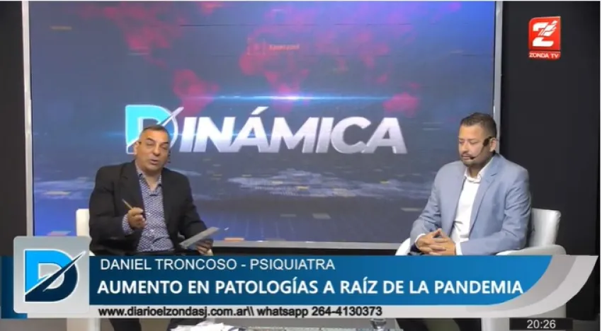 El doctor Daniel Troncoso médico psiquiatra que se desempeña tanto en el ámbito público como privado de la salud mental explicó en Dinámica por Zonda TV las pautas a tener en cuenta ante intentos de suicidio o conductas relacionadas con quitarse la vida.