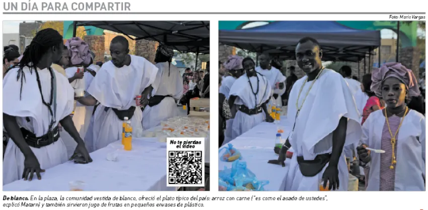 En la plaza, la comunidad vestida de blanco, ofreció el plato típico del país: arroz con carne ("es como el asado de ustedes", explicó Matarn) y también sirvieron jugo de frutas en pequeños envases de plástico.