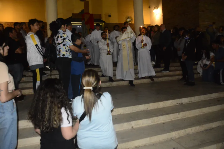 Jóvenes y adultos, la familia toda, colmó la iglesia al asistir a la oración por la juventud que encabezó el Padre Andrés Riveros, Párroco de la Catedral, que culminó con un recorrida por las calles aledañas a la Plaza 25 de Mayo.
