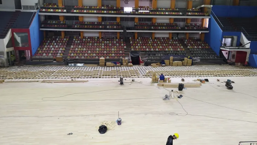 Pero sin dudas que el trabajo mas fino y a la vez de mayor exigencia es el piso. El parquet del Cantoni había sufrido mucho desgaste en los últimos dos años y ya no estaba en condiciones óptimas para un evento de las características del mundial.