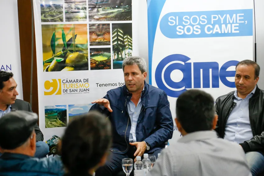 Ariel Giménez, de la Asociación Sanjuanina de Agencias de Viaje y Turismo, agradeció al gobernador "por haber aceptado la invitación. Es un placer tenerlo en la sede de la Federación Económica, entidad a la que pertenece la Cámara de Turismo. Gracias a todos por venir. Acá se van a encontrar con agentes de viaje, hoteleros, trasportistas, representantes de Aerolíneas Argentinas; está todo el sector representado en todas las personas que están acá".
