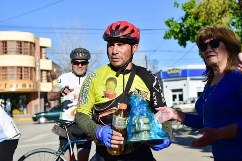 En esta travesía, llegó a nuestro departamento y fue recibido por el intendente, Miguel Vega y la directora de Acción Social, Eva Castro; quienes le entregaron algunos obsequios e instaron a seguir adelante sin bajar los brazos.
