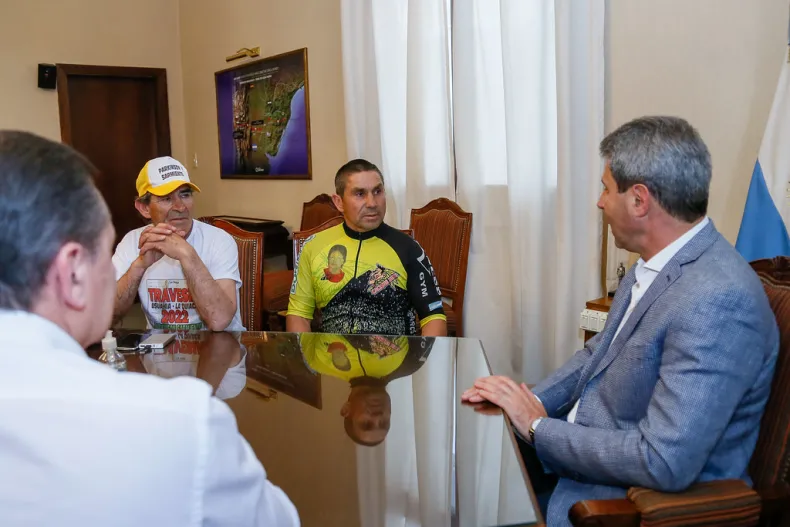 Por su parte, Omar Rojas dijo que "fue un placer conocer al gobernador" y agradeció la bicicleta todo terreno aportada por el Gobierno para poder terminar la travesía. "Estoy muy contento por eso y por la ayuda que recibí para terminar el recorrido", cerró.