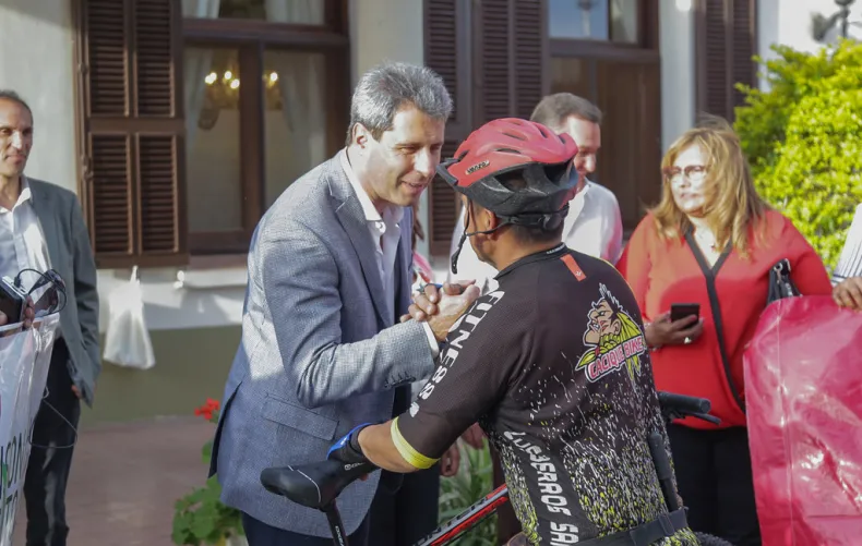 Luego de dialogar con el gobernador Uñac, Rojas recibió por parte del Gobierno de San Juan una bicicleta todo terreno que le permitirá finalizar la travesía que tiene como último destino Ushuaia.