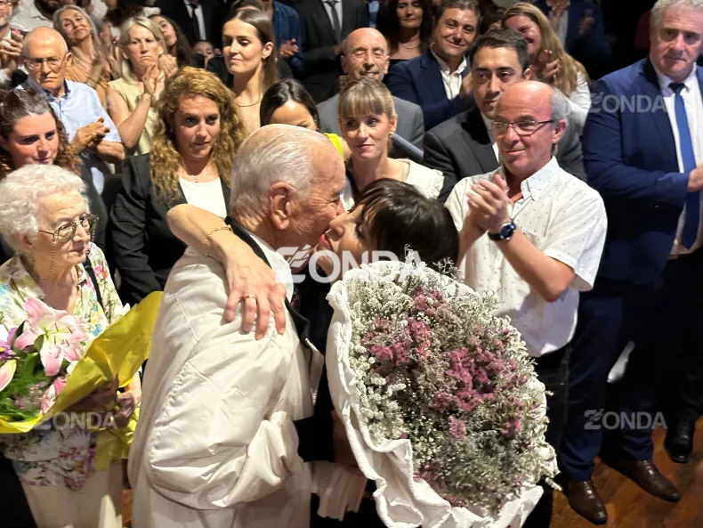La entrega de este ramo de flores por parte del papá de Susana Laciar y el abrazo en el que se fundieron fue uno de los puntos más fuertes y emocionantes de la noche que se vivió en el Cine Teatro Municipal este sábado.