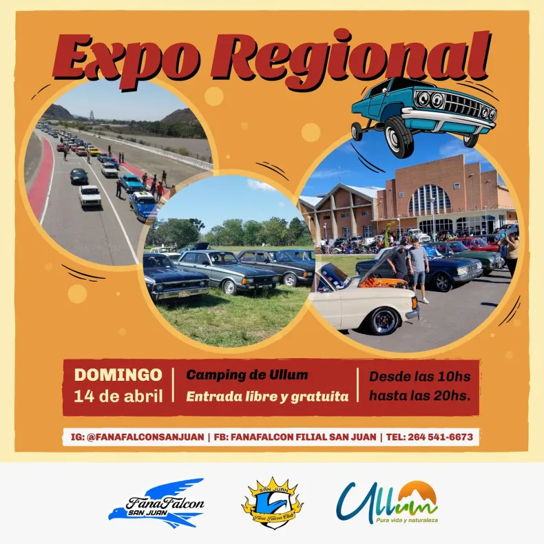 La organización del evento, está a cargo de la agrupación "Fan Falcon San Juan", ha dispuesto que la entrada sea libre y gratuita para que nadie se quede afuera de este espectáculo que no se ven todos los días y para que todos los apasionados por autos y motos puedan llegar en familia hasta ese lugar.