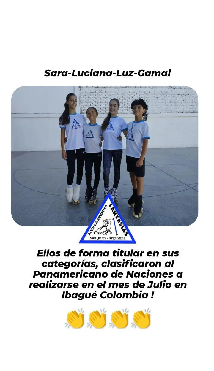 Con las ilusiones intactas de estar presentes, las excelentes patinadoras sanjuaninas Luciana Segovia, Luz Tejada, Sara Toia y Gamal Araya, todas pertenecientes al Club Fantasías Patinaje Artístico, tienen por ahora la gran chance de representar al país en los Panamericanos de Naciones que se desarrollará en la ciudad de Ibagué en Colombia, ya que fueron seleccionadas en el equipo de la Selección Argentina de esta especialidad.