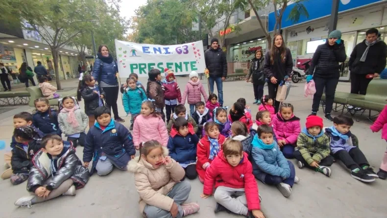 En la fría mañana de este viernes, los pequeños de sala de 4, del ENI 63, de Villa América, junto a su seño Carolina Pedrozo, se concentraron en la Plaza 25 de Mayo para desplegar una actividad muy especial.