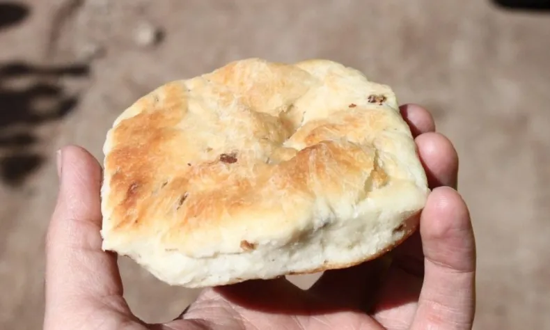 Los uniformados lo encontraron en Av. Benavidez antes de calle Padre Yanelli, mientras estaba sentado en una acequia comiendo una semita que sacaba de una bolsa de nylon celeste.