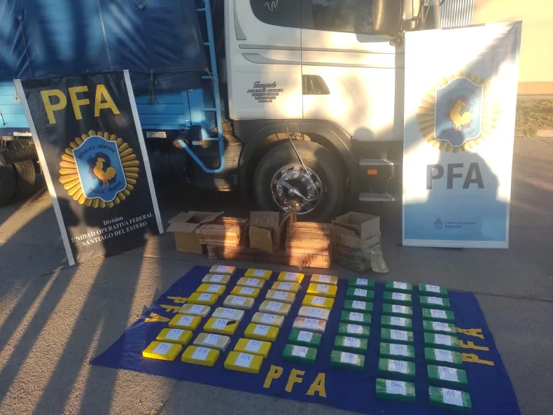 El Juzgado Federal N° 2, a cargo del Dr. Sebastián Argibay, dispuso la detención del chofer y su acompañante por infracción a la Ley 23.737 y ordenó el traslado del camión a la sede de Aduana, ubicada en el Parque Industrial de la ciudad de La Banda, para que se le realice una inspección con el escáner de ese organismo.