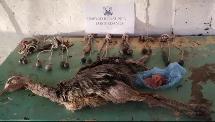 Según lo consignado por personal de la Policía Rural Nº 3, encontraron 10 caballos, 16 perros galgos, el ave fallecida y, además, boleadoras, que aparentemente utilizaban para cazar.