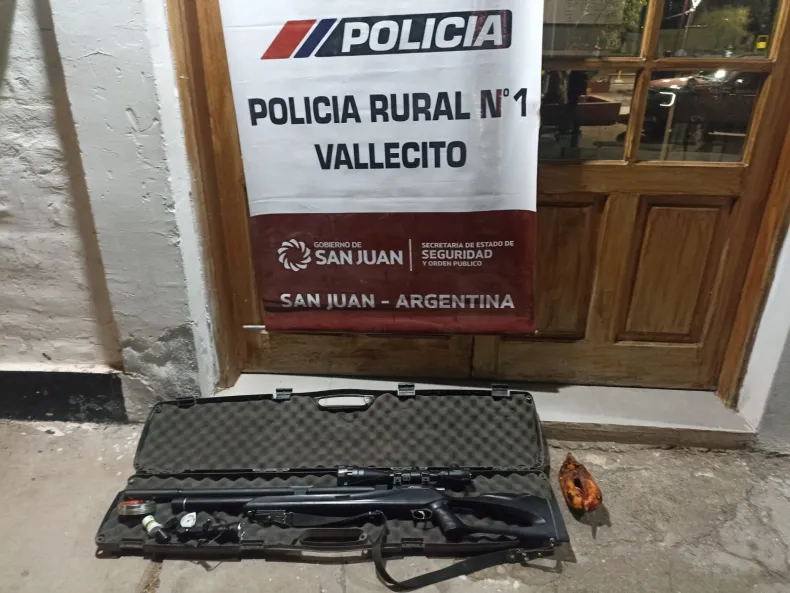 Este domingo por la tarde, efectivos de la Unidad Rural Nº1 de San Juan, detuvieron a dos cazadores en inmediaciones del pasaje de la Difunta Correa. Los mismos llevaban un animal autóctono faenado y un arma de aire comprimido.