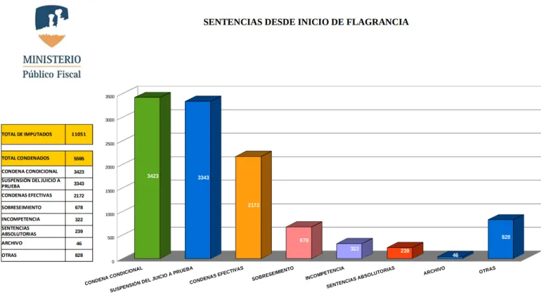 El número total de imputados desde 2017 asciende a 11.051, con 2.837 imputados solo en 2020, el año con mayor actividad judicial en este período. En cuanto a las sentencias, el informe revela que se han dictado 5.595 condenas, de las cuales 3.423 fueron condicionales y 2.172 efectivas. Estos datos subrayan la efectividad del sistema de flagrancia en la resolución de casos, aunque también destacan la necesidad de abordar el alto número de sobreseimientos, que alcanzó los 678.