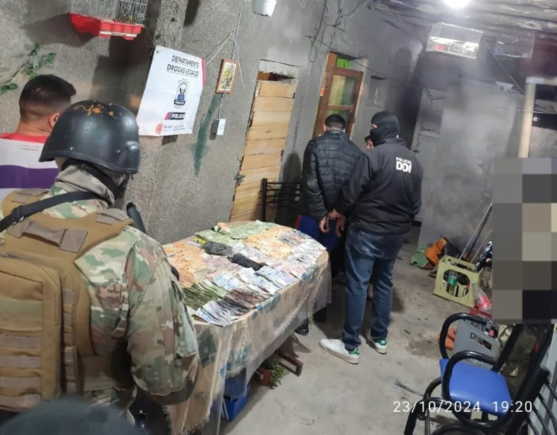 Todo lo obtenido en el procedimiento fue trasladado al local del Departamento Drogas Ilegales, quedando a disposición del Juzgado Federal, mientras que otro sujeto, de 24 años que se encontraba comprando drogas en el lugar, también fue detenido y derivado a la sede de la Subcomisaría Villa Hipódromo para continuar con los trámites legales correspondientes.