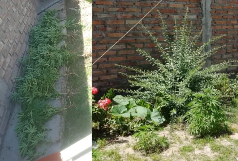 Al no recibir respuesta de los residentes, los agentes ingresaron utilizando la fuerza pública y se encontraron con una sorpresa en el patio trasero de la propiedad: una plantación de marihuana.