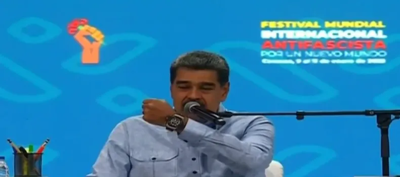 Un día después de su asunción, el presidente de Venezuela, Nicolás Maduro, realizó una particular arenga donde aseguró que él es un "soldado de Perón" y hasta cantó junto a la militancia que se acercó al Festival Internacional Antifascista. Además, contó Diego Maradona le había regalado un lujoso reloj y lo mostró en medio de su discurso.