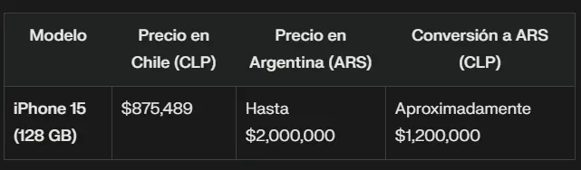 Finalmente, los celulares son uno de los productos más atractivos para los turistas argentinos que visitan Chile debido a las diferencias de precios significativas que pueden alcanzar hasta un 50% de ahorro en algunos modelos populares como el iPhone 15.