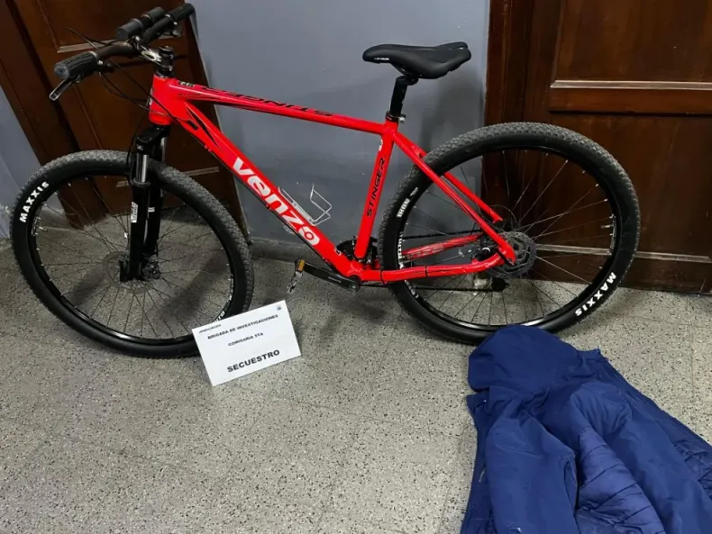 Con esos datos, el personal policial se dirigió a las inmediaciones de calle Pedro Álvarez y Pueyrredón, donde, entre los arbustos, hallaron una bicicleta color rojo, rodado 29, abandonada, la que fue trasladada hasta la sede policial.