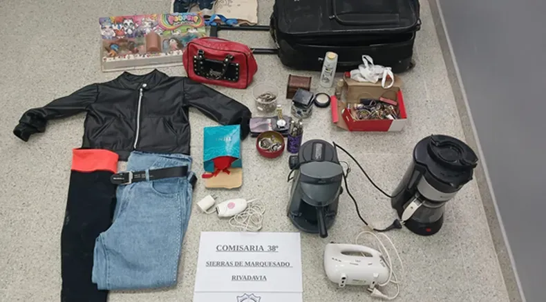 Entre los objetos recuperados se encuentran dos cafeteras (una marca Oster y otra Suzika), una batidora marca BKF, una depiladora eléctrica marca Braun, alhajas varias (anillos, pulseras, aros, relojes), prendas de vestir, una valija grande de color negro, una cartera roja, maquillajes y juguetes nuevos en caja.