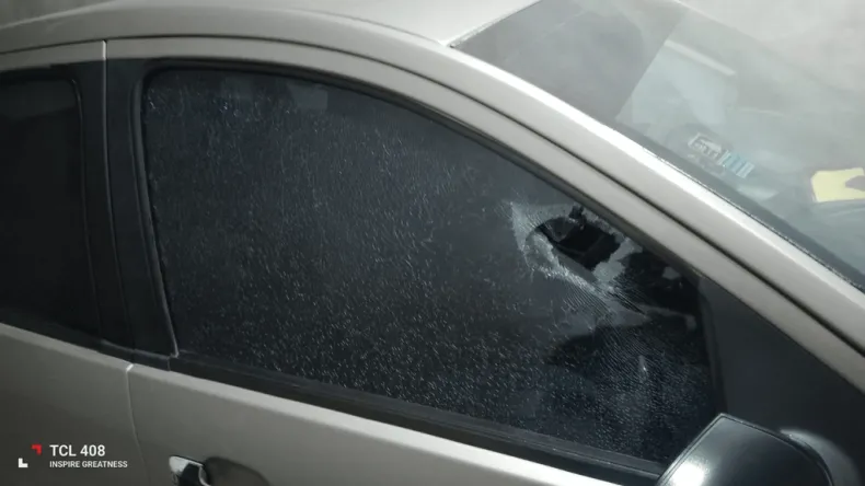 Uno de los proyectiles impactó en el parabrisas de un automóvil, ocasionando la rotura del vidrio. Como resultado, la persona que ocupaba el asiento del acompañante sufrió la caída de fragmentos de vidrio en el rostro. Afortunadamente, la víctima no presentó lesiones graves en los ojos.