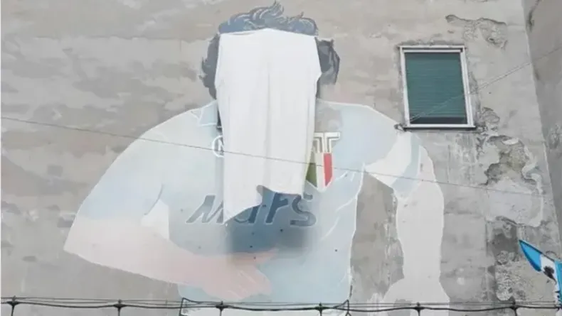 Un acto de protesta sorprendió a Italia: el emblemático mural de Diego Maradona en el barrio Quartieri Spagnoli de Nápoles amaneció este miércoles con el rostro del astro argentino cubierto.