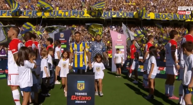 Estudiantes cumplió con el pasillo de honor al proclamado campeón Rosario Central, pero lo hizo dándoles la espalda, mostrando su rechazo a la decisión de la AFA de otorgar el título al conjunto rosarino.