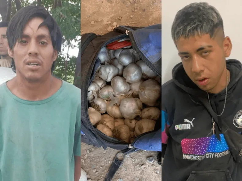 Al día siguiente, en Rawson, efectivos de la Subcomisaría Barrio Ansilta detuvieron a Román David Narváez, de 19 años, en calle Agustín Gómez cuando llevaba dos mochilas con cabezas de ajo. El propietario y el encargado de la finca realizaron la denuncia y el procedimiento fue ordenado por el ayudante fiscal doctor Usin Emiliano, quien inició la flagrancia.